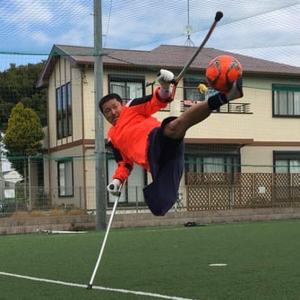 アンプティサッカー(切断者サッカー)とは、主に上肢、下肢の切断障害を持った選手がプレイするサッカーです。1チームフィールドプレイヤー6名、キーパー1名の7人制競技。